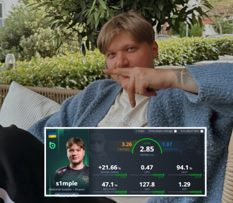 s1mple打出了職業(yè)生涯中單圖rating最高的一場比賽。